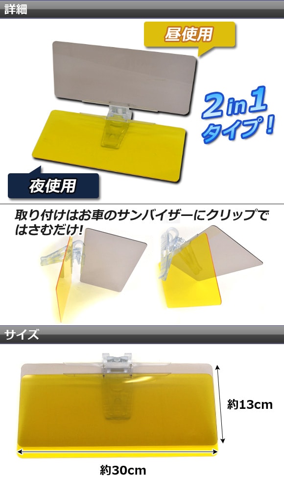 サンバイザー バイザー デイサンバイザー ナイトサンバイザー デイバイザー ナイトバイザー クリアサンバイザー シールド 車用サンバイザー ダブル アンチグレア anti glare 防眩 日差し 日中 夜間 夜 日除け 日よけ 昼用 夜用 偏光 紫外線 UVカット UVガード フィルター ボード プレート プラプレート スモーク smoke イエロー 黄色 yellow サングラス automobile motorcar オートモービル モーターカー カー 車 自動車 車両