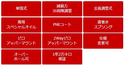 ダンパー/スプリング構成:【F】一体式 【R】一体式