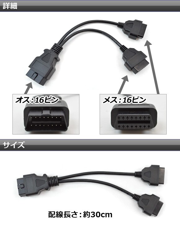 OBD分岐ハーネス 16ピン 汎用 AP-OBD2PORT-16P