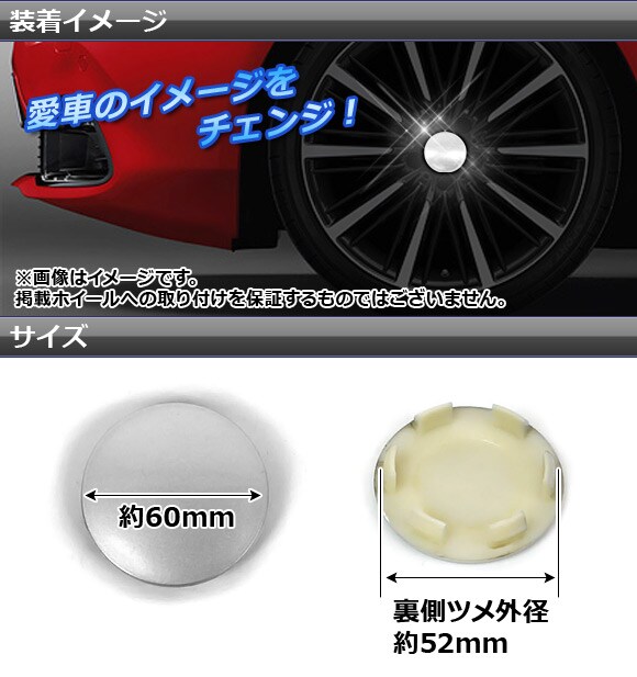 ホイールセンターキャップ シルバー 径60mm 汎用 入数:1セット(4個) AP-WCCAP02-SI