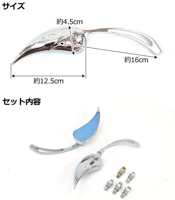 カスタムミラー サイドミラー バックミラー リアビューミラー ステムミラー 鏡 クルーザー チョッパー ハーレー アメリカン ハーレーダビッドソン ホンダ ヤマハ スズキ カワサキ ドゥカティ ダイナ ソフテイル スポーツスター ヘリテージ ワイドグライド ナイトトレイン アイアンホース ローライダー ファットボーイ スプリンガー スクリーミングイーグル ロードキング 涙 しずく 銀 シルバー ブルー 青 ブルーミラー ガーニッシュ 外装 パーツ ドレスアップ 角度調節 アルミ 防眩 カスタム バイク オートバイ 2輪車 二輪 二輪車