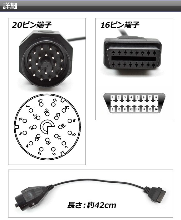 16ピン台形OBD2(メス) → 20ピン丸型OBD(オス)