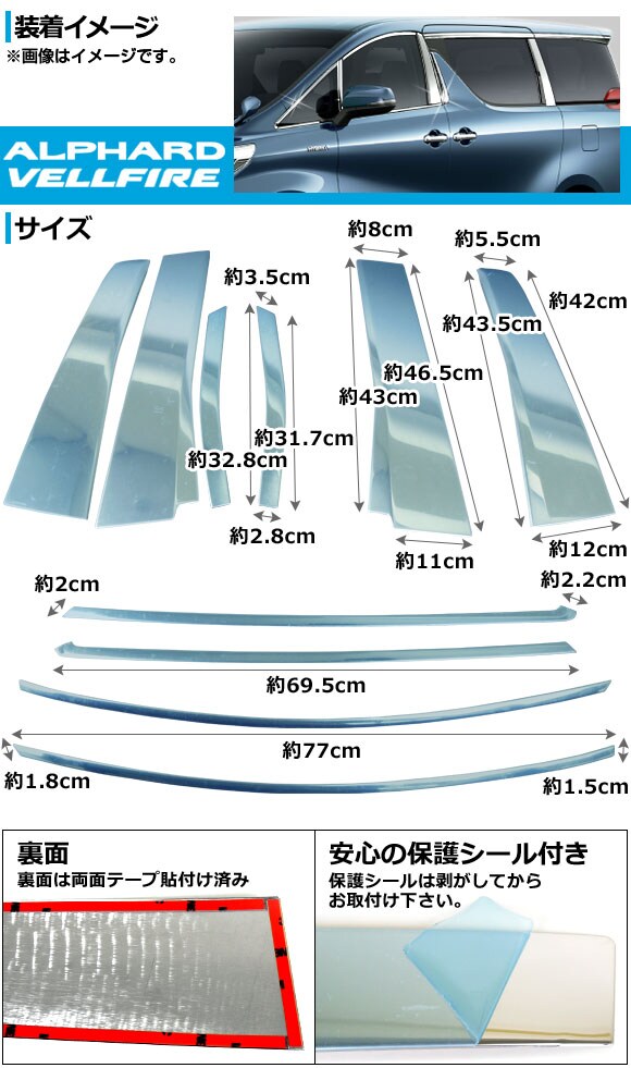 AP トヨタ自動車 AGH30W AGH35W GGH30W GGH35W AYH30W ピラー パネル モール サイドピラー モールカバー フロントピラー ドアピラー ALPHARD アルフアード VELLFIRE ヴェルファイヤ ベルファイヤ ベルファイア S SA SR GF X Z G V ZA VL ZG EL グレード HYBRID ウインドウ ウィンドウ ウインドー ウィンドー 窓 トリム ガーニッシュ カバー サイド ドア 銀 シルバー セット エクステリア 鏡面 パーツ ドレスアップ 外装 外装パーツ カスタム メッキ automobile motorcar オートモービル モーターカー カー 車 自動車 車両 HW05T8210