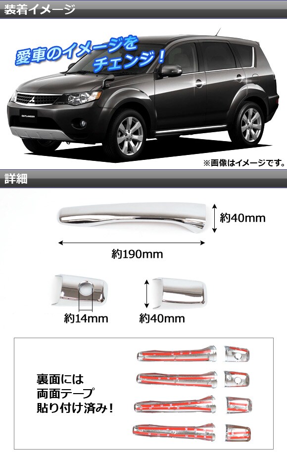ドアハンドルカバー ミツビシ グランディス NA4W 2003年~2007年 キーオペ無し用 ABS 鏡面仕上げ 入数:1セット(8個)