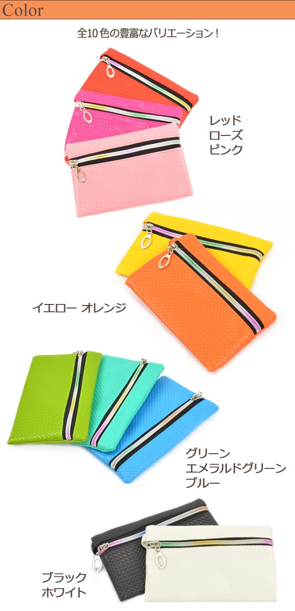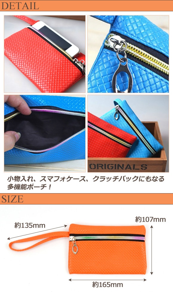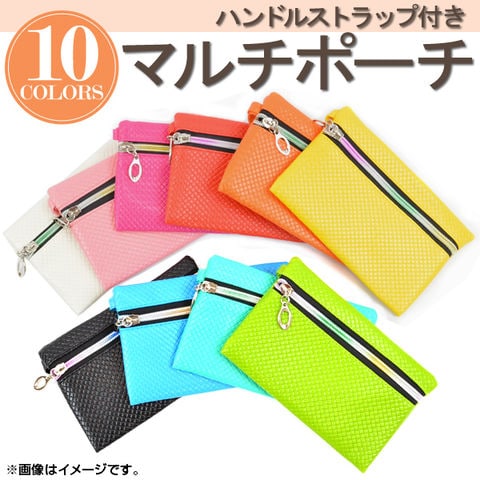 AP マルチ ポーチ マルチケース クラッチ クラッチバッグ バッグ バック 小物入れ ケース 小銭入れ アクセサリーポーチ 財布 ハンドストラップ ストラップ ショートストラップ キーケース スマフォ スマートフォン スマホ 化粧 小物 小銭 アクセサリー 鍵 白 桃 赤 橙 黄 緑 青 黒 white pink rose red orange yellow emerald green blue black ファスナー チャック PUレザー メッシュ レディース 女性 カジュアル シンプル ミニ
