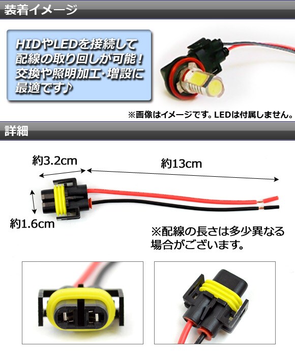 H8/H11 カプラーケーブル メス 交換/加工/増設など 防水 入数:1セット(2個) AP-CPCBL-H8H11