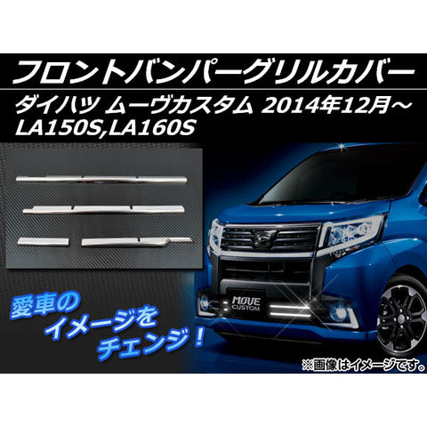 フロントバンパーグリルカバー ダイハツ ムーヴカスタム LA150S,LA160S 2014年12月~ シルバー ステンレス 入数:1セット(4個) AP-EX483