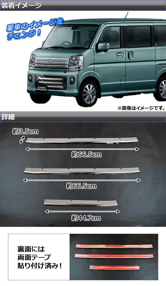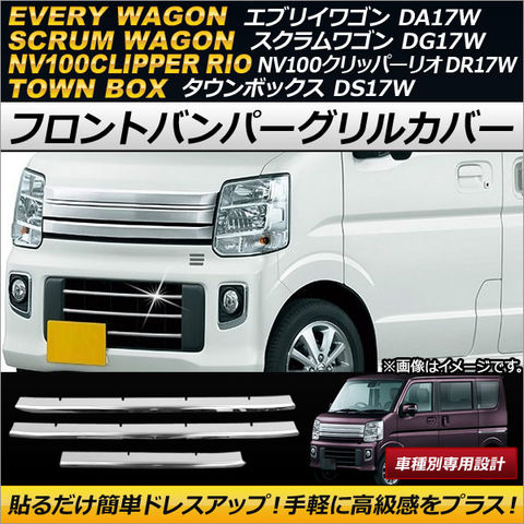 フロントバンパーグリルカバー スズキ エブリイワゴン DA17W 2015年02月~ ステンレス製 入数:1セット(3個)