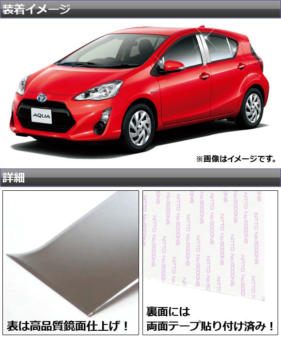 トヨタ自動車 メッキピラー ステンレスピラー ピラーパネル ステンレスメッキカバー サイドピラーパネル サイドピラーカバー メッキパーツ AQUA 10系 NHP10型 ピラー パネル ガーニッシュ カバー 外装 ドレスアップ エクステリア メッキ パーツ silver シルバー 銀 鏡面 メッキカバー サイド side 側面 窓 窓側 ウィンドー ウィンドウ ウインドウ 装飾 ドア 外装パーツ カスタム セット キット automobile motorcar オートモービル モーターカー カー 車 自動車 車両