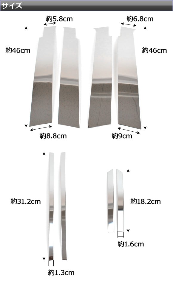 ピラーカバー トヨタ アクア NHP10 2011年12月~ ステンレス 入数:1セット(8枚) AP-PC-AQUA