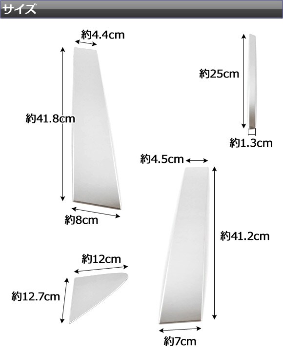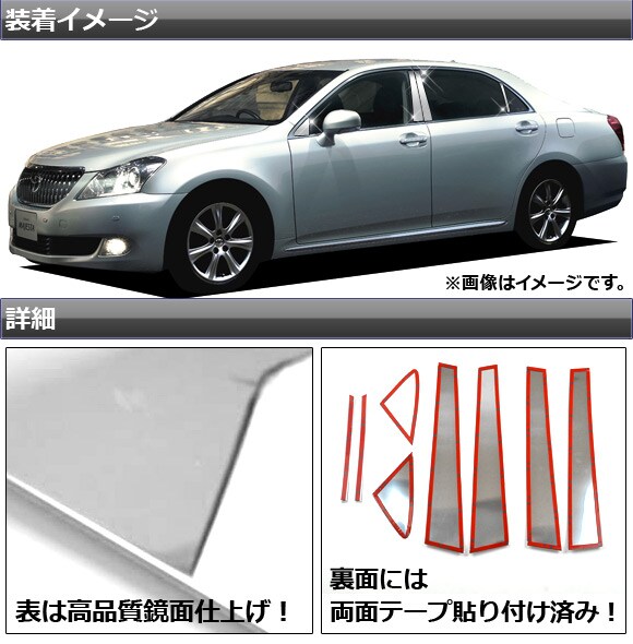 ピラーカバー トヨタ クラウンマジェスタ 20系 サイドバイザー無し用 2009年03月~2013年09月 ステンレス 鏡面仕上げ AP-PC-CRMJ-20 入数:1セット(8枚)