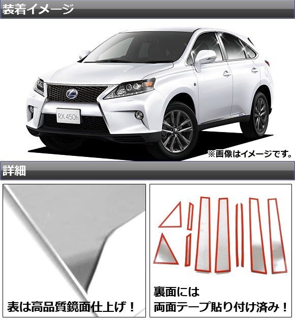 ピラーカバー レクサス RX270 RX350 RX450h 10系 サイドバイザー無し用 2009年01月~2015年10月 ステンレス 鏡面仕上げ 入数:1セット(10枚) AP-PC-LEXUS-RX