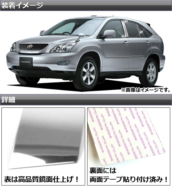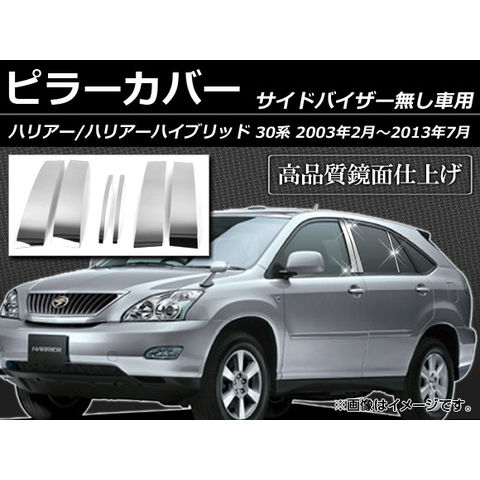 ピラーカバー トヨタ ハリアー 30系 サイドバイザー無し用 2003年02月~2013年07月 ステンレス 鏡面仕上げ AP-PC-HARRIER30 入数:1セット(6枚)