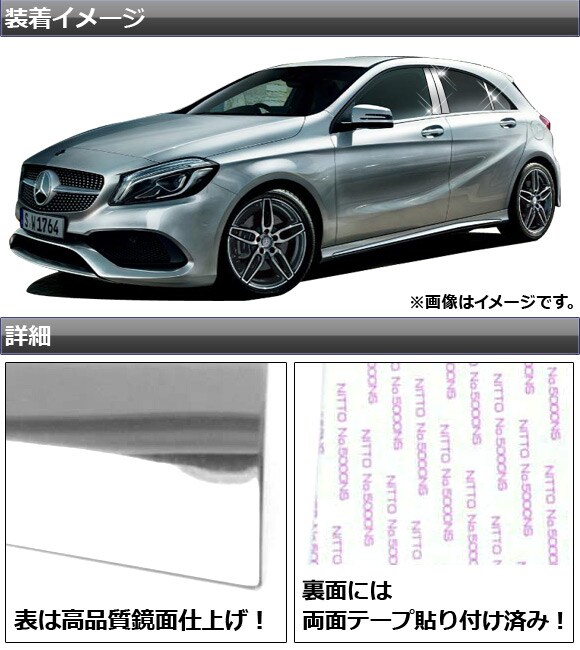 ピラーカバー メルセデス・ベンツ Aクラス W176 サイドバイザー無し用 2013年01月~ ステンレス 鏡面仕上げ 入数:1セット(6枚) AP-PC-BENZ-A