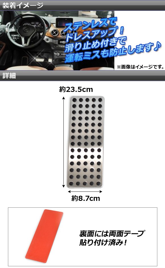 ステンレスペダルセット ステンレスペダル ペダルセット ペダル ペダルカバー カバー ステンレスフットレスト フットプレート プレート フットペダル クラス シルバー クローム 銀 silver chrome 滑り止め ゴム 内装 インテリア ドレスアップ カスタム カスタマイズ 改造 automobile motorcar オートモービル モーターカー カー 車 自動車 車両