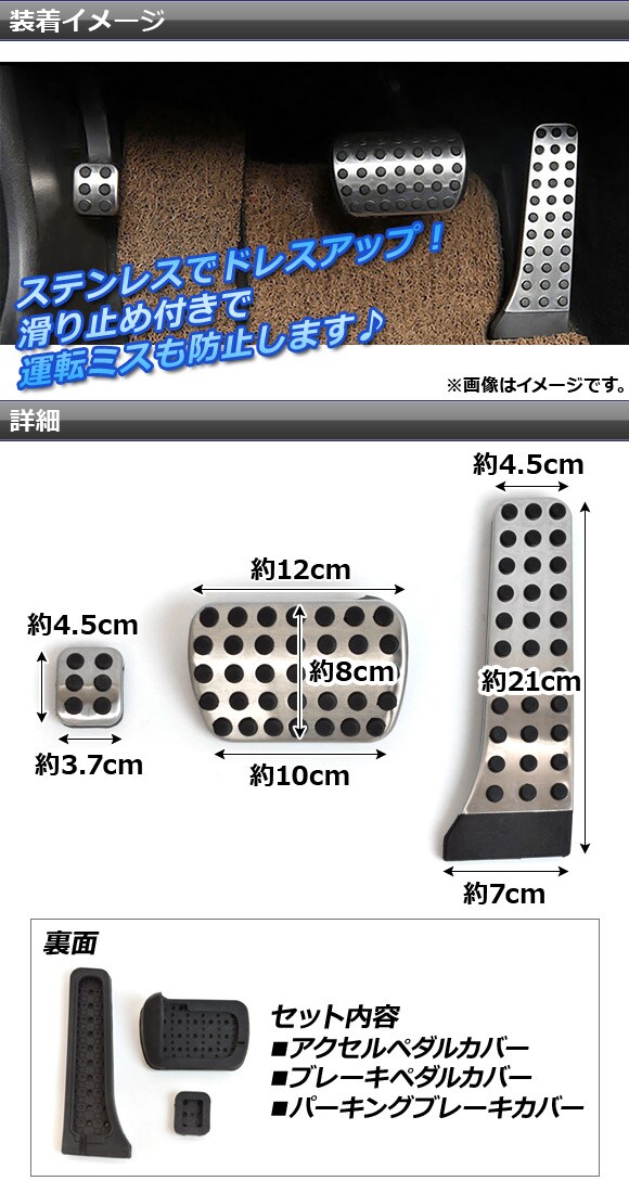 ステンレスペダルセット ステンレスペダル ペダルセット ペダル ペダルカバー カバー ステンレスアクセルペダル アクセルペダル アクセルペダルカバー ステンレスブレーキペダル ブレーキペダル ブレーキペダルカバー ステンレスパーキング パーキングペダル パーキングブレーキ サイドブレーキ サイド アクセル ブレーキ パーキング クラス シルバー クローム 銀 滑り止め ゴム AT車用 AT車 AT オートマチック オートマ トランスミッション 内装 インテリア ドレスアップ カスタム 改造 セット キット カー 車 自動車