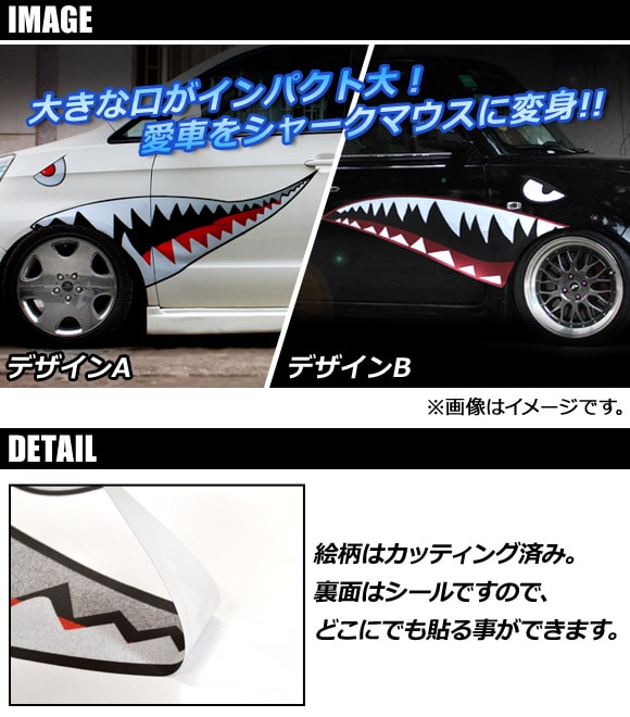 シャークマウスステッカー シボ調加工 車のボディなどに! 選べる2デザイン 入数:1セット(2枚) AP-SHARKMS02