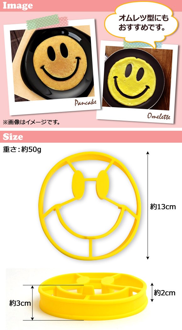 シリコンモールド エッグモールド パンケーキモールド ホットケーキモールド ホットケーキリング ブレックファーストモールド モールド 型 リング パンケーキ型 ホットケーキ型 オムレツ型 卵焼き型 玉子焼き型 ホットケーキ パンケーキ オムレツ 卵焼き 玉子焼き スマイル スマイルフェイス フェイス マーク 笑顔 顔 台所 台所用品 キッチン キッチン雑貨 雑貨 調理器具 キッチン器具 器具 用具 道具 シリコン シリコーン フライパン 簡単 便利 朝食 カフェ おやつ お菓子 調理 料理 クッキング かわいい 可愛い キュート イエロー 黄色