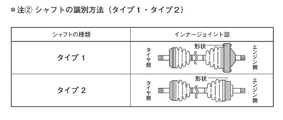 ※リビルト品及び、新車時とは異なるドライブシャフトで修理交換されている車輌の場合は適合が異なる場合がありますので、ご注意下さい。