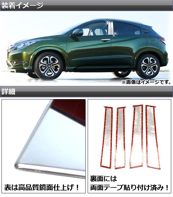 ピラーカバー ホンダ ヴェゼル/ヴェゼルハイブリッド RU系(RU1,RU2,RU3,RU4) サイドバイザー無車用 2013年12月~ ステンレス AP-DG001 入数:1セット(4枚)