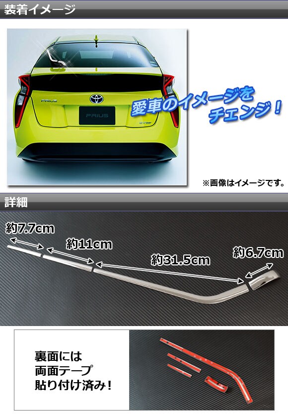 リアワイパーカバー トヨタ プリウス ZVW50,ZVW51,ZVW55 2015年12月~ シルバー ステンレス 入数:1セット(4個) AP-XT015