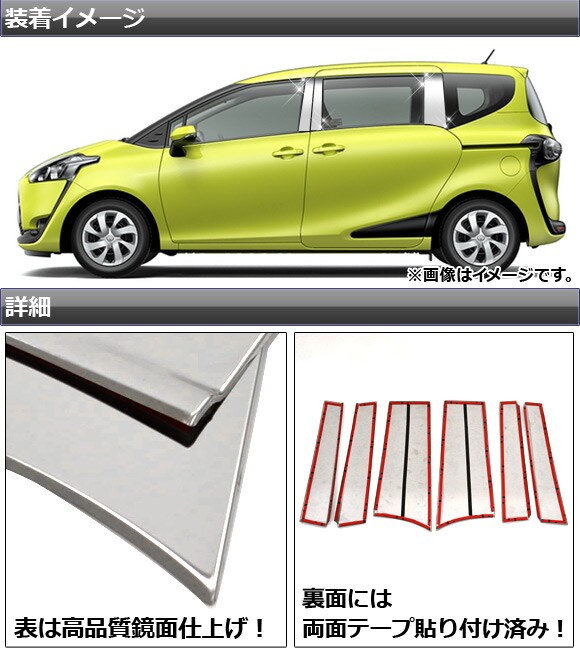 ピラーカバー トヨタ シエンタ/シエンタハイブリッド 170系(NSP170G,NCP175G,NHP170G) サイドバイザー無車用 2015年07月~ ステンレス AP-DG005 入数:1セット(6枚)