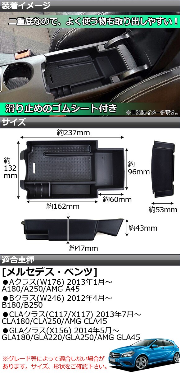 収納ボックス アームレスト コンソールボックス グローブボックス 収納ケース 収納トレイ Aクラス Bクラス CLAクラス GLAクラス A180 A250 B180 B250 GLA180 GLA220 GLA250 AMG 45 4MATIC W176 W246 C117 X117 X156 黒 black マット 艶消し ベンツ 肘掛け 肘かけ 肘置き コンソール ボックス センターコンソール トレイ 二重底 小物入れ 車内 収納 内装 内装パーツ パーツ インテリア 便利グッズ 整理 ミリ 13.2 23.7 4.7 センチ メルセデス・ベンツ MERCEDES BENZ automobile motorcar オートモービル モーターカー カー 車 自動車 車両