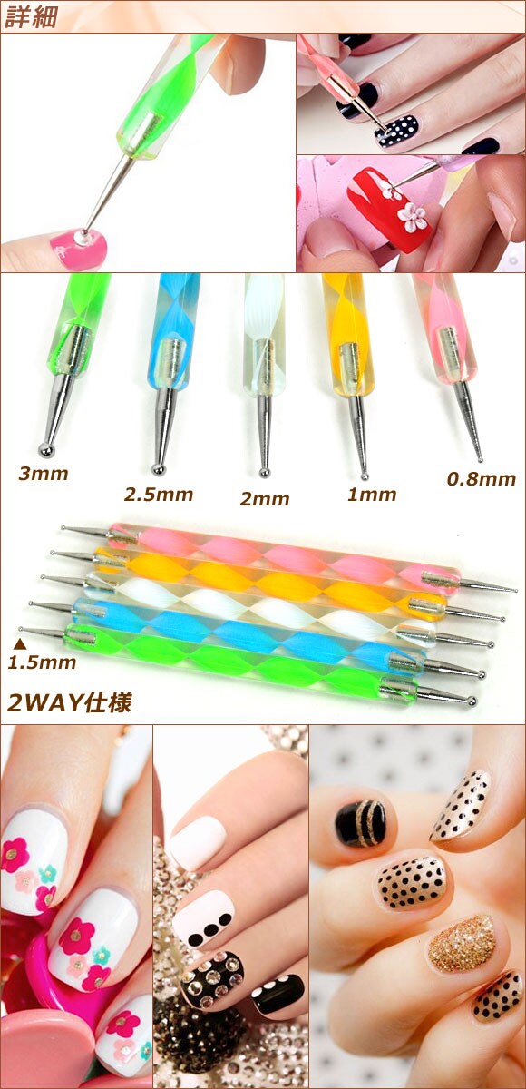 ネイル ドットペン 水玉や花柄がキレイに仕上がる♪ネイルアート必須アイテム AP-TH048 入数:1セット(5本)