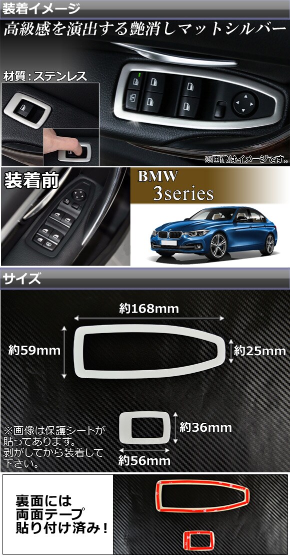 パワーウィンドウスイッチカバー BMW 3シリーズ F30/F31/F34 2012年01月~ ステンレス AP-IT028 入数:1セット(4個)