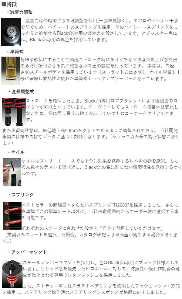 RS★R 株式会社ティエムシー アールエス・アール アールエスアール あーるえすあーる RSR RS☆R 車高調 車高調整式 ショックアブソーバー サスペンションパーツ サスペンションセット スプリング ショックアブソーバ キット セット KIT SHOCK ABSORBER ローダウン ダウンサス ドレスアップ パーツ 単筒式 モノチューブ ミドルタイプ 全長調整式 減衰力調整 Black-i ブラックアイ