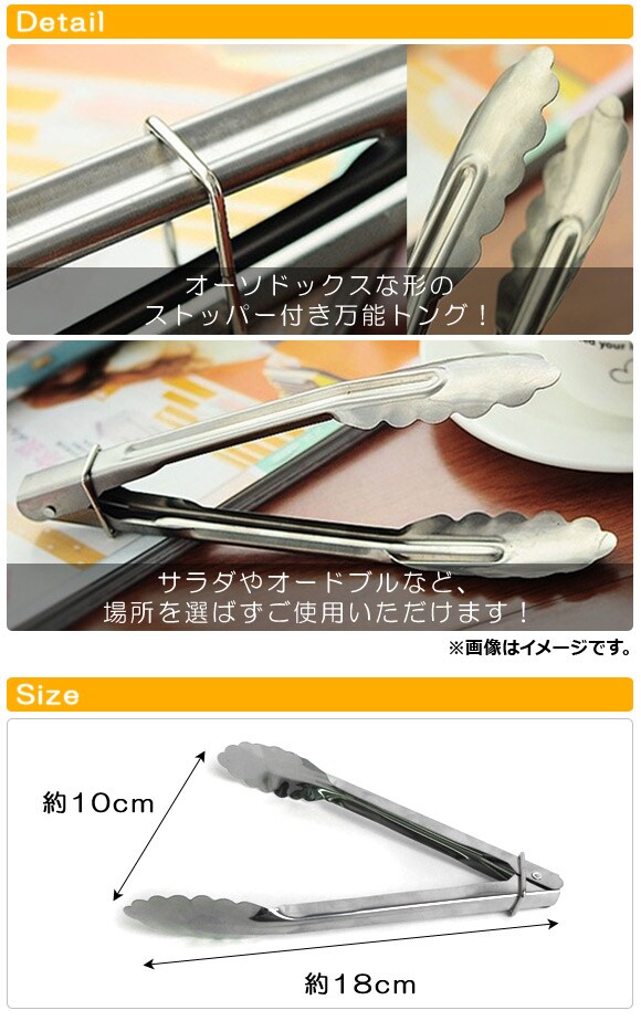 万能トング ステンレス製 ストッパー付き 約18cm AP-TH078