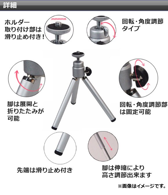 コンパクトスタンド スマートフォン/デジカメ 汎用 三脚 角度変更可能 入数:1セット(2個) AP-TH088