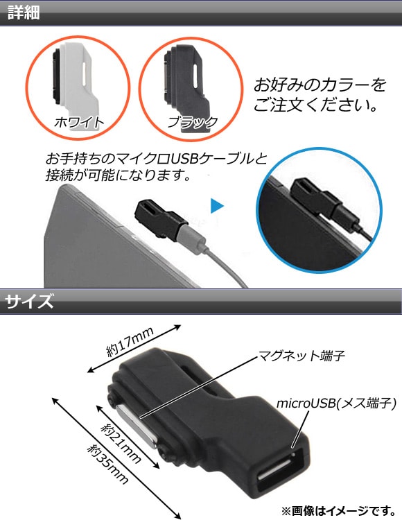 Xperia用充電変換アダプタ マグネット式 microUSB 薄型/シンプルデザイン 選べる2カラー AP-TH097
