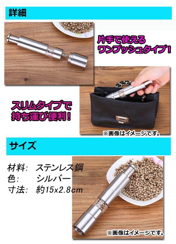 ソルト&ペッパーミル 手動ワンプッシュタイプ スリムタイプで持ち運びに便利 AP-TH146