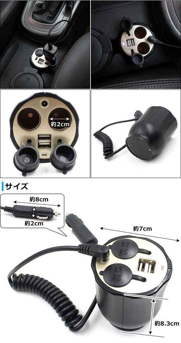 シガーソケット増設とUSBシガーソケット充電器が一つになった便利グッズ!