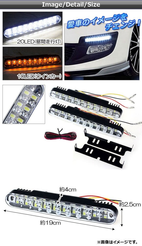 LEDデイライト 12V 片側30連 6000k 汎用品 視認性アップ! AP-LL018