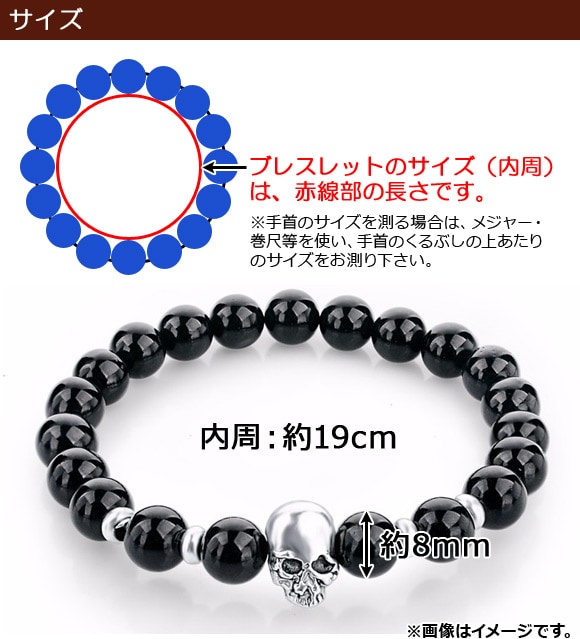 天然石 スカル 8mm玉 手首廻り:約19cm