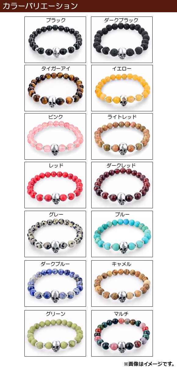 パワーストーンブレスレット 天然石 スカル 8mm玉 手首廻り:約19cm 選べる14カラー AP-AR019