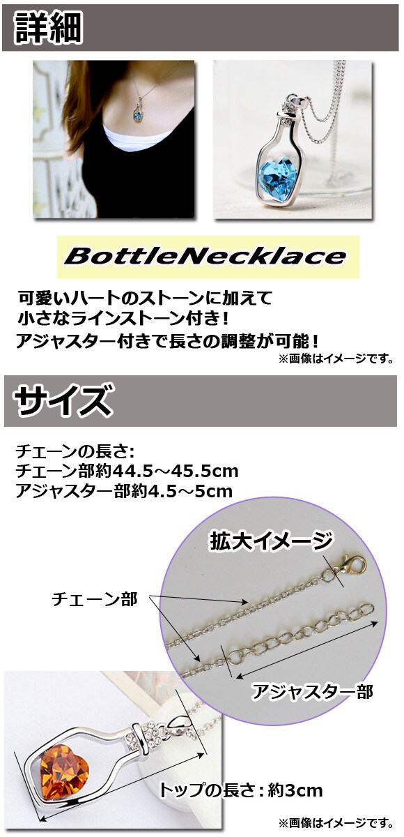 ボトルネックレス 亜鉛合金製 クリスタル 可愛いハートのストーン付き! 選べる3カラー AP-TH178