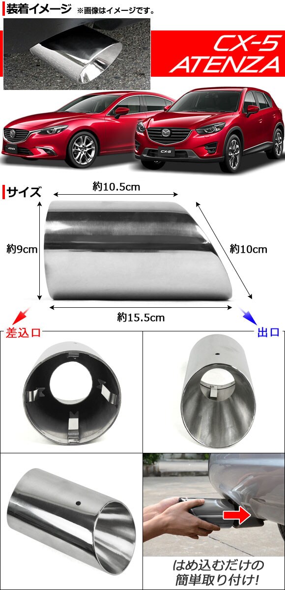 マフラーカッター マツダ アテンザ GJ系 セダン/ワゴン 2012年11月~ シルバー ステンレス 鏡面