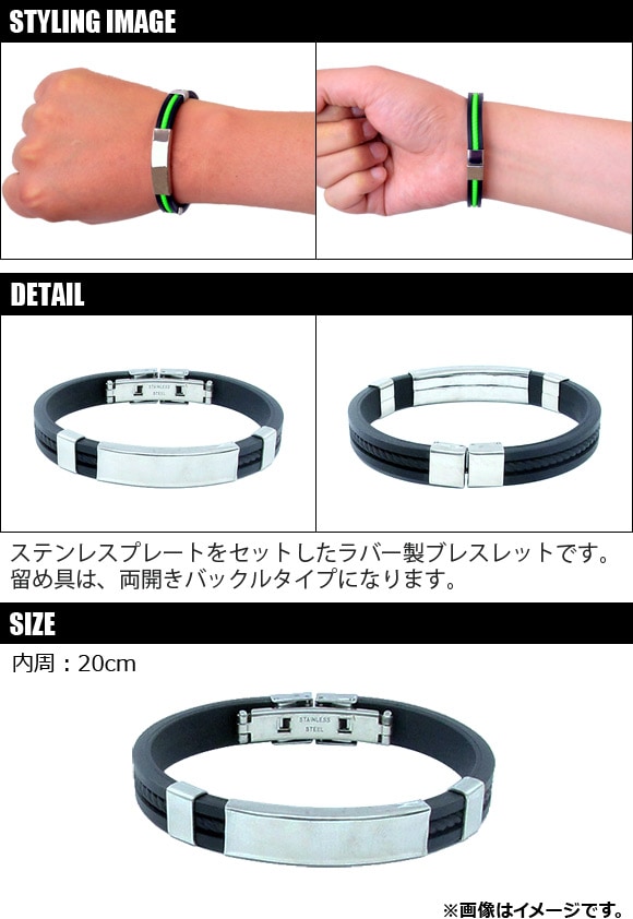 ステンレスプレートをセットしたラバー製ブレスレット。