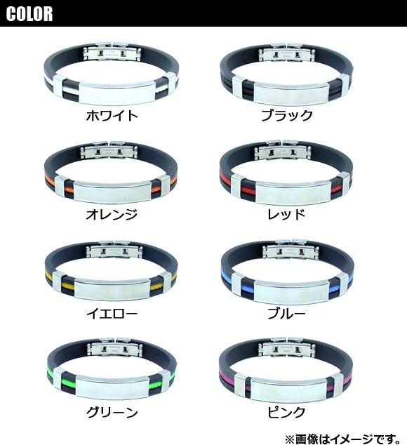 ステンレスプレートブレスレット ラバーベルト センターシングルライン 選べる8カラー AP-AR023