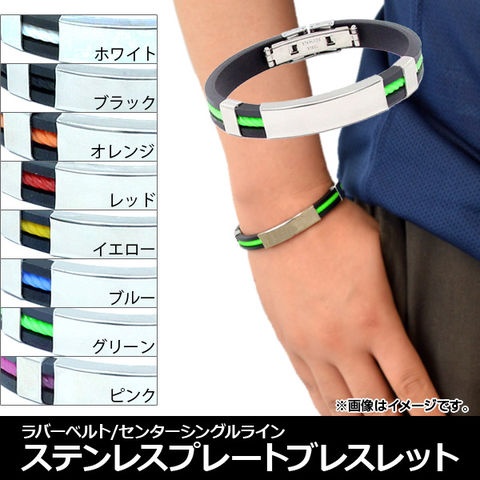 ステンレスプレートブレスレット ラバーベルト センターシングルライン 選べる8カラー AP-AR023