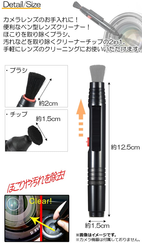 カメラレンズクリーナー ペン型 チップ・ブラシ/2in1 ほこりや汚れを除去!! AP-TH220