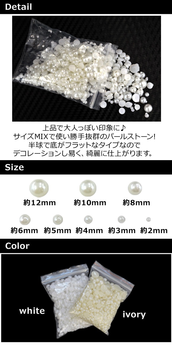 サイズMIXで使い勝手抜群の大容量パールストーンです。