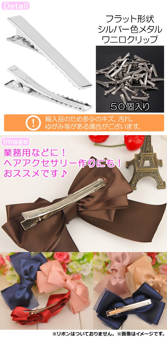 ヘアクリップセット 約32mm フラット形状/シルバー色メタル/ワニ口 業務用に! 手芸材料に! AP-AR030 入数:1セット(50個)