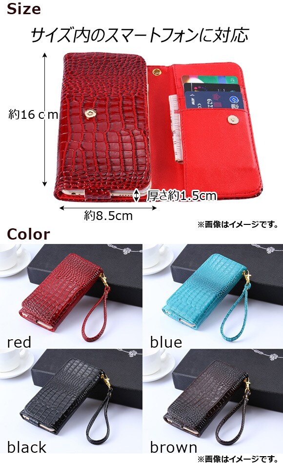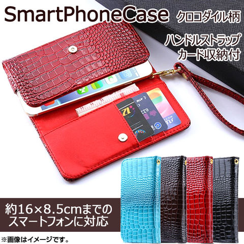 スマートフォンケース 汎用 光沢クロコダイル柄 ハンドルストラップ付き 選べる4カラー AP-TH280