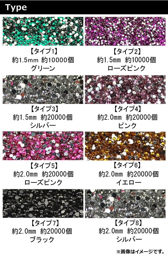 ラインストーン 大容量! プラスチック ネイルアートや小物デコに♪ 選べる8タイプ AP-TH301