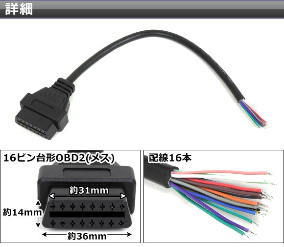 16ピン台形OBD2(メス) ←→配線16本