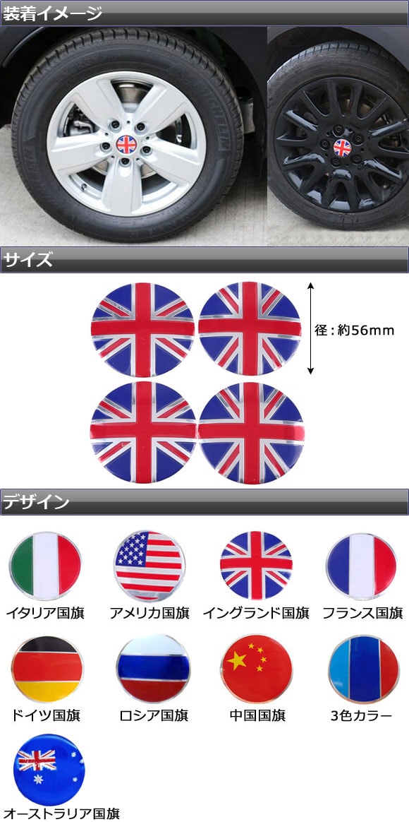プレート ステッカー シール デカール カーステッカー カーシール ハブ キャップ カバー ホイール センター センターキャップ センターカバー 56ミリ 2.2inch 2.2インチ アルミ イングランド イギリス フランス イタリア ドイツ アメリカ USA ロシア 中国 チャイナ オーストラリア フラッグ 国旗 旗 銀 シルバー タイヤ 中心 真中 汎用 3D 立体 エクステリア デザイン おしゃれ デコ ドレスアップ 外装 ガーニッシュ リム トリム ベゼル カスタム カスタマイズ カスタムパーツ 装飾